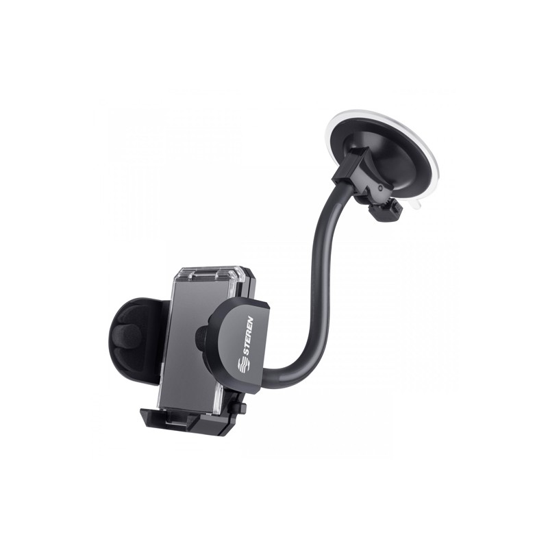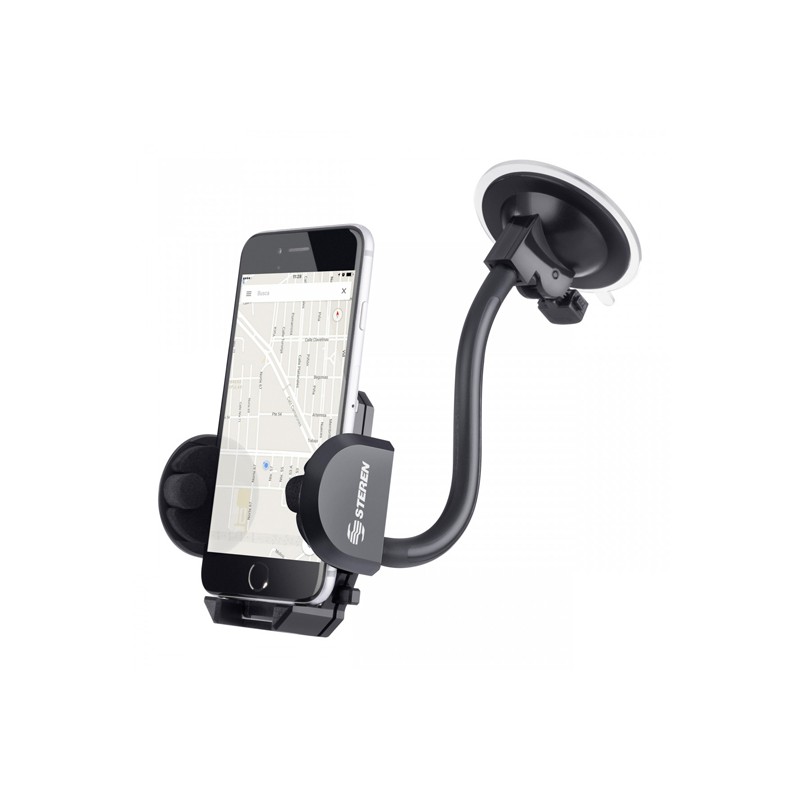 SOPORTE PARA IPOD Y CELULARES, QUE SE INSTALA EN EL PARABRISAS. DIMENSIONES DEL BRAZO: 1,2 CM DE DIÁMETRO X 8 CM DE DIÁMETRO DE LA VENTOSA X 27 CM DE LONGITUD DIMENSIONES DEL SOPORTE: 7 CM DE FRENTE X