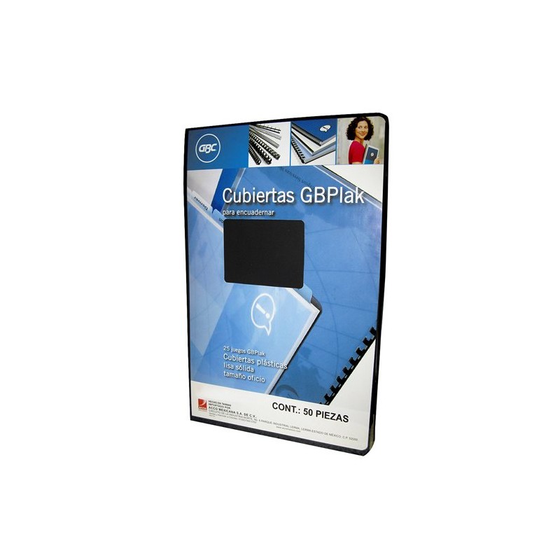 CUBIERTAS LISAS GBC GBPLAK COLOR NEGRO PUNTOS DE ESPESOR 14 TAMAÑO OFICIO 1 PAQUETE CON 50 PIEZAS