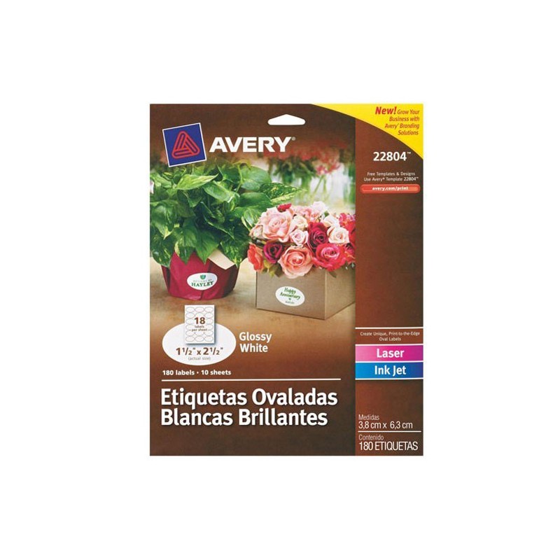 ETIQUETAS OVALADAS BLANCAS BRILLANTE AVERY 22804 DE 3.81X6.3 CM 1 PAQUETE