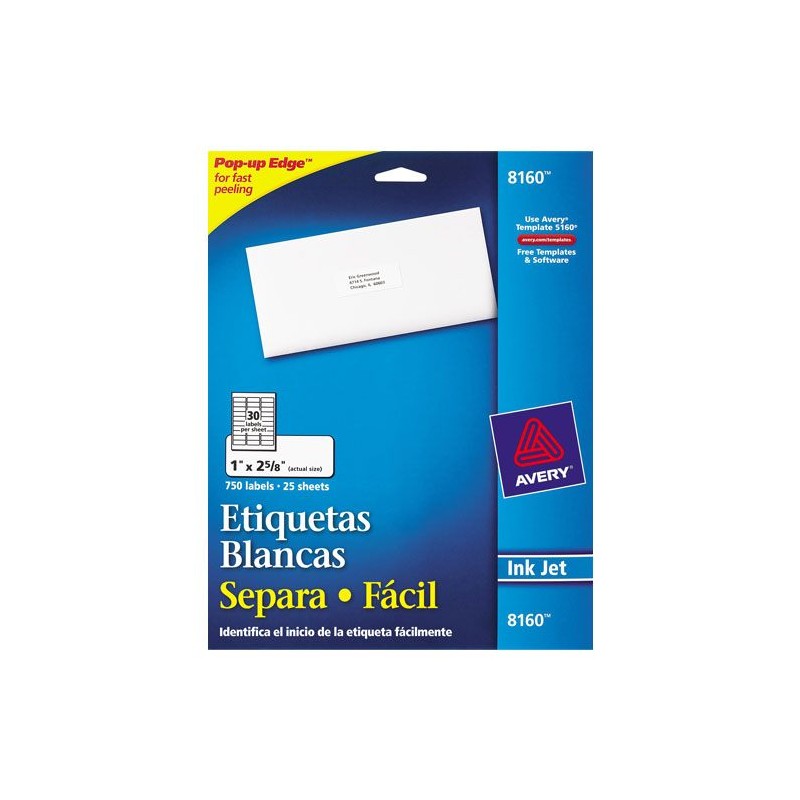 ETIQUETAS SEPARA FACIL BLANCAS AVERY 8160 DE 2.5X6.7 CM 1 PAQUETE