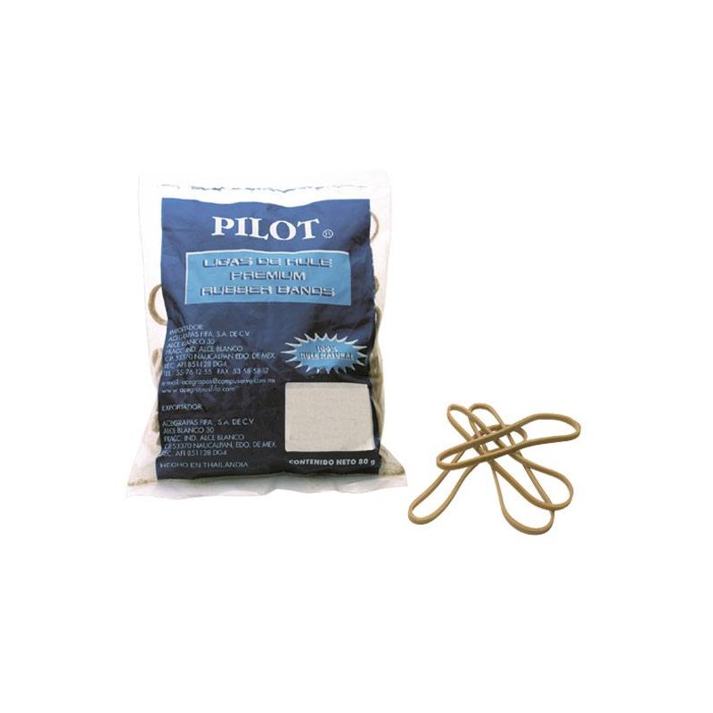 LIGA DE HULE NATURAL PILOT NÚMERO 18 COLOR BEIGE PAQUETE CON 80GR