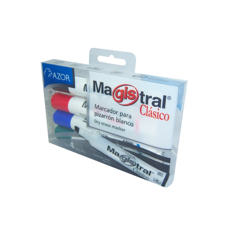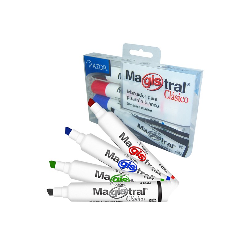 MARCADOR PARA PIZARRON AZOR MAGISTRAL CLASICO 83474 COLOR SURTIDO 4 PIEZAS