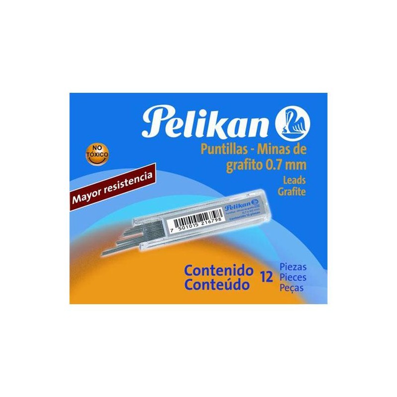 PUNTILLAS PELIKAN DE GRAFITO NÚMERO 0.7 MM 1 TUBO CON 12 PUNTILLAS