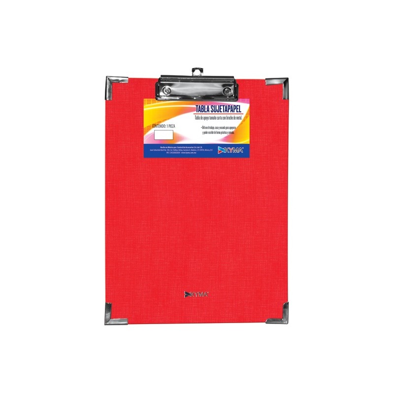 TABLA SUJETAPAPEL KYMA LINROJ TAMAÑO CARTA DE PLASTICO CON BROCHE CROMADO 1 PIEZA